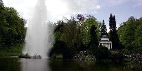 Zum Weltkulturerbe wurde 2013 der nach Kurfürst Wilhelm I. benannte Bergpark Wilhelmshöhe ausgerufen. Der 245 Hektar große Park gilt als einzigartiges Beispiel der europäischen Gartenbaukunst. Er steigt vom „Lac“ genannten Teich unterhalb des Schlosses Wilhelmshöhe bis zu Kassels Wahrzeichen – dem Monument mit der mehr als acht Meter hohen Herkules-Statue auf der Spitze – über 300 Meter an. Mit seinen abwechslungsreichen Pflanzungen sowie kleinen und großen Bauwerken bietet er immer neue „lebende“ Landschaftsbilder. Ein Publikumsrenner sind die mittwochs und sonntags ab 14.30 Uhr veranstalteten Wasserspiele. Das Wasser rauscht die Kaskaden unterhalb des Herkules hinab, passiert Teufelsbrücke und Aquädukt, bevor es zum spektakulären Abschluss der Spiele kommt: Aus dem bis dahin ruhig daliegenden Schloss-teich schießt eine 50 Meter hohe Fontäne. V.-M. Thiede