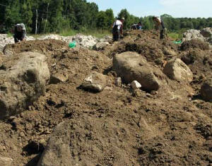ein Massengrab menschenverächtlich mit Schaufelbaggern ausgehoben und alles