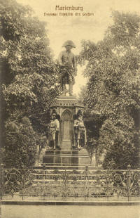 1872 wurde in Anwesenheit der kaiserlichen Familie in Marienburg der Grundstein zum Denkmal für Friedrich II. gelegt. Das Denkmal wurde 1877 eingeweiht. -